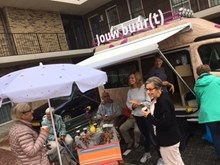 Op maandagochtend 3 juli stond de Jouw buur(t) bus in Beugen. Ongeveer twaalf bewoners kwamen langs bij Sociaal Consulent Judith Peters voor een kopje koffie en wat lekkers. Ondanks het miezerige weer was het een gezellige ochtend. Judith: “We hebben gesproken over de buurt en de woonomgeving. Een aantal bewoners heeft buurtwens-kaarten ingevuld. Dit biedt een mooie kans om bewoners zelf een rol te geven in hun leefomgeving. Ook zijn er voorstellen gedaan over het groen in de wijk, welke ik ga bespreken met de gemeente. En de bewoners gaan een buitenbankje uitzoeken zodat zij elkaar ook buiten kunnen ontmoeten. Met één van de buurtbewoners ga ik binnenkort uitgebreider in gesprek over zijn persoonlijke woonsituatie. Dat de bewoners het waardeerden dat ik er was, bleek uit de vraag wanneer ik weer wilde komen. Dit informeel samen zijn is zeker voor herhaling vatbaar.”