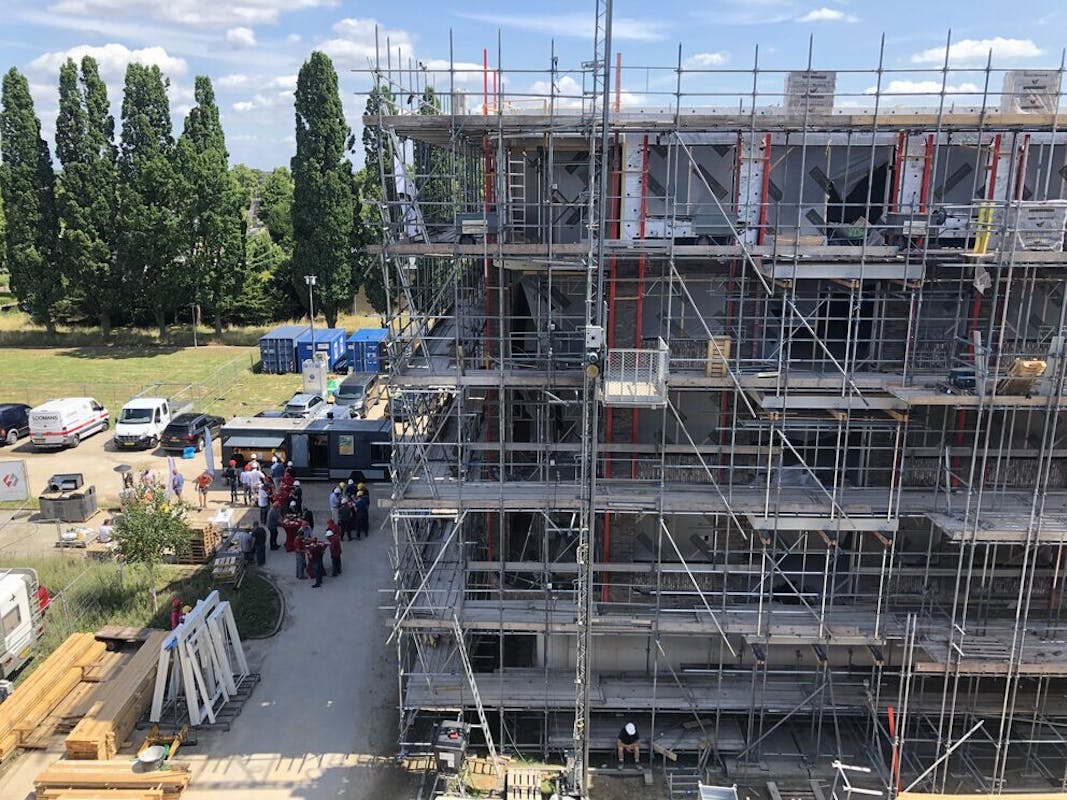 Van der Heijden Bouw en Ontwikkeling bouwt in opdracht van Mooiland 68 nieuwbouwappartementen op een prachtige locatie in Boxmeer. Afgelopen maandag vierden we samen met hen het bereiken van het hoogste punt! Altijd een bijzonder moment tijdens de bouw. De vlag werd gehesen en een frietkar stond klaar met een lekkere snack.
