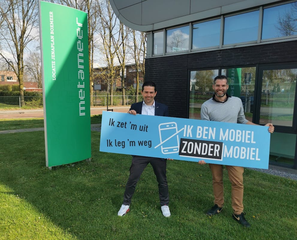 De hele week is Alex Buijk, van beroep illusionist, met Otto van de Sanden van Attacom, specialist in jongerencommunicatie, op pad geweest in onze gemeente met de VO-scholen versie van de campagne ‘Ik ben mobiel zonder mobiel’.