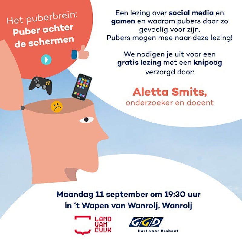 Lezingen over gezondheid 11 september 2023 Lezing "Pubers achter de schermen" van Aletta Smits