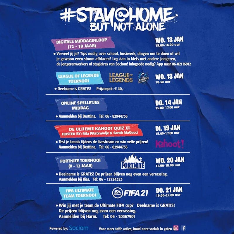Voor de jongeren in onze regio is thuisblijven natuurlijk ook een uitdaging. Daarom organiseert het jongerenwerk van Sociom samen met E-sportsCafé een online game toernooi. Lij...